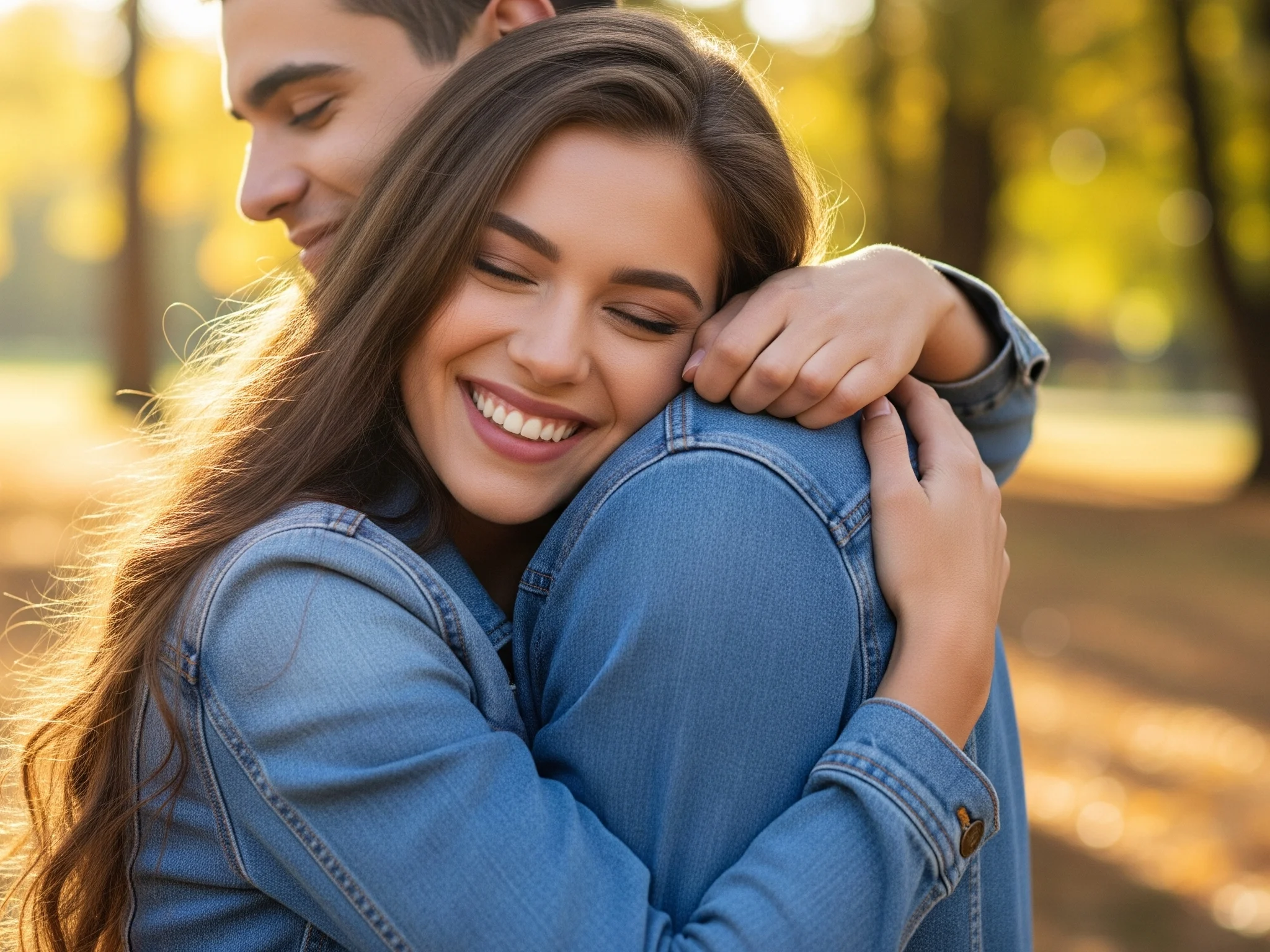 Prompt sederhana: “Dua orang berpelukan romantis di bangku taman saat golden hour, cahaya lembut, suasana alami, latar belakang pohon dan bunga”. AI Berpelukan dengan detail seperti ini akan membuat hasil foto lebih hangat dan romantis.